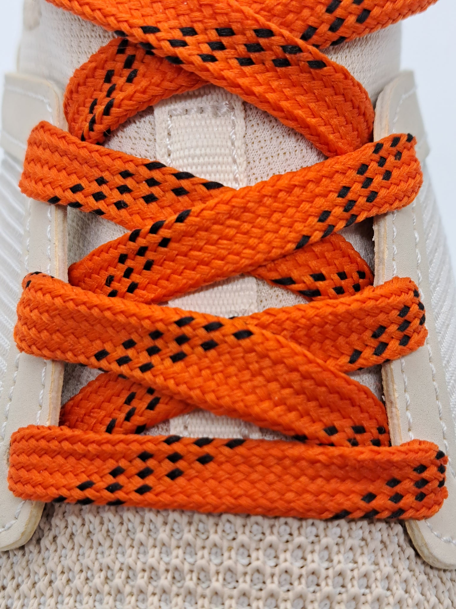 Premium grade Orange Sport laces with Black accents.  These high quality laces will look great on your shoes.  Show off your team colors or just find the perfect look for your favorite shoes.  These laces are flat and approximately ½” wide.