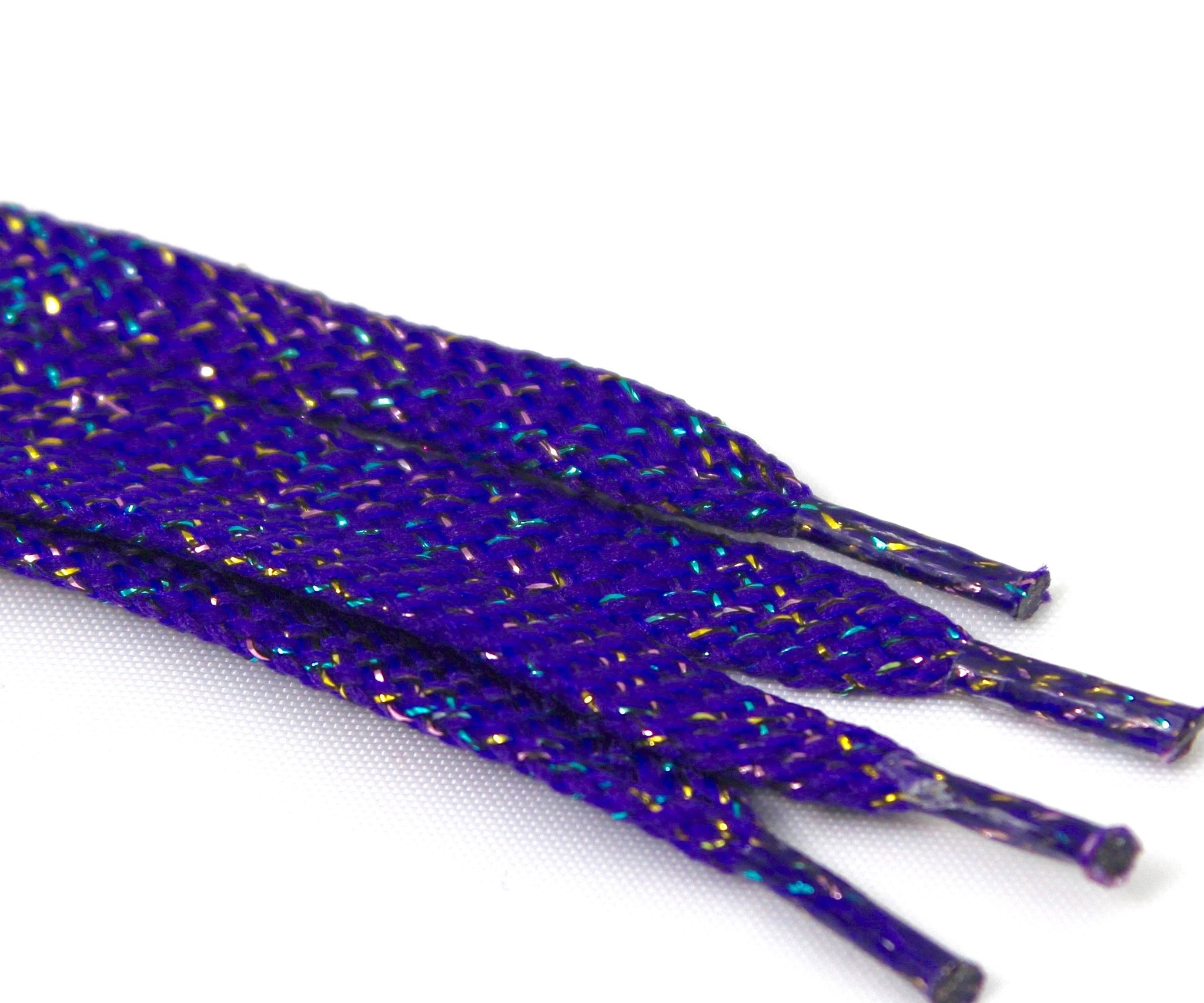 Standard width sparkle shoelaces. Our usual flat laces, infused with shimmery yarn. Flat laces that are approximately 3/8” wide. Many colors are available but if you don’t see the combination you want feel free to reach out to us.
