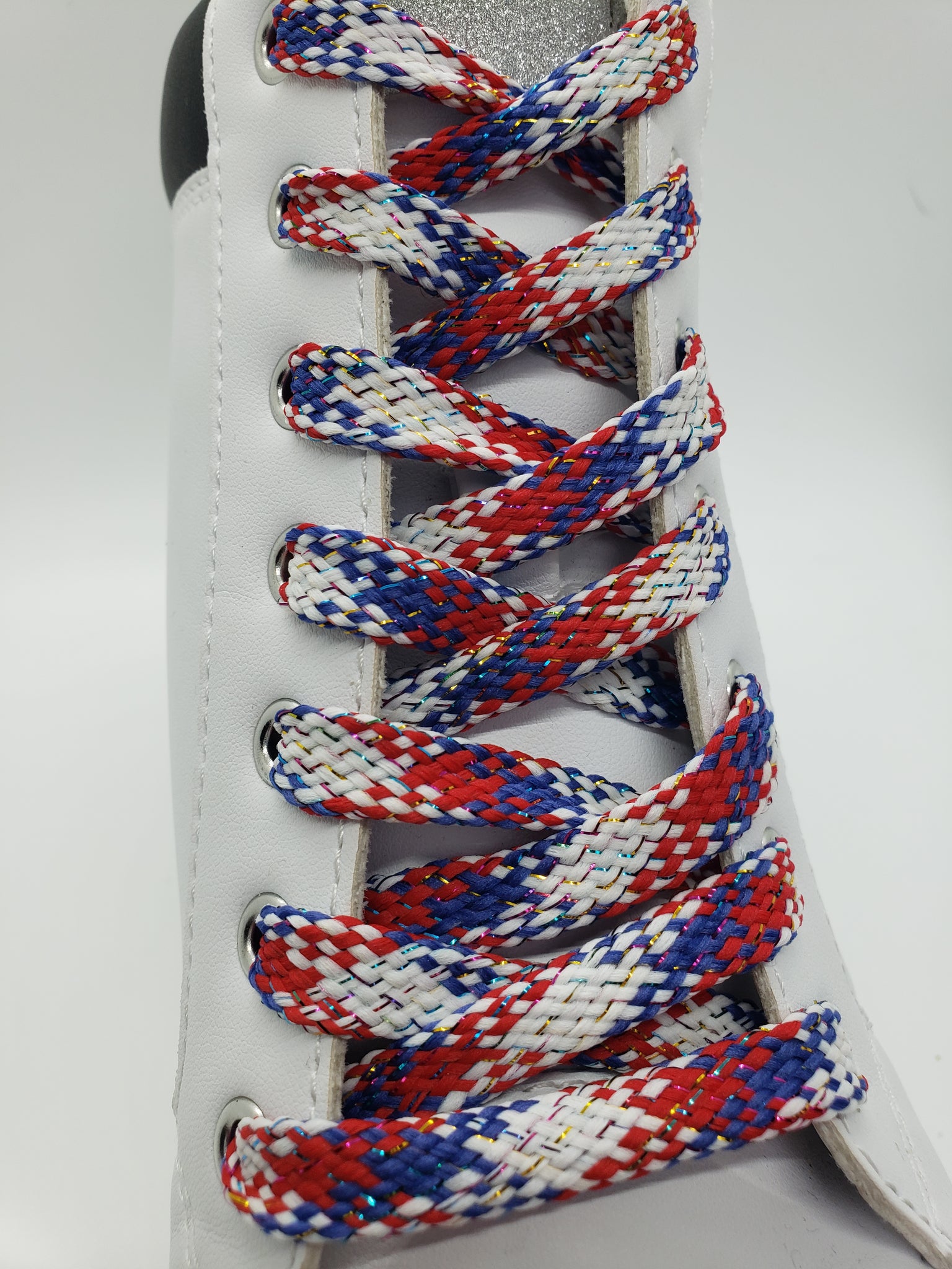 Flat American Flag Sparkle Shoelaces - Red, White and Blue