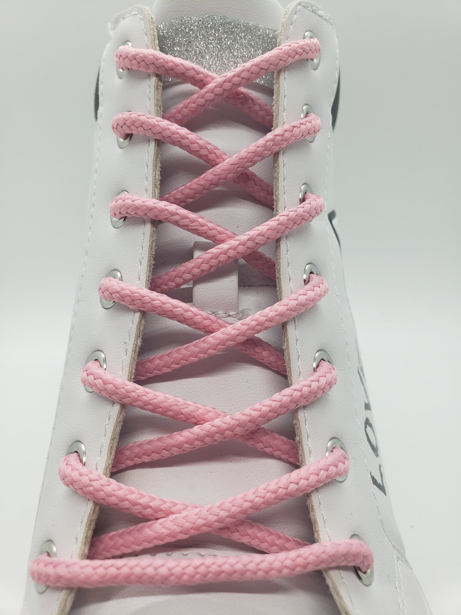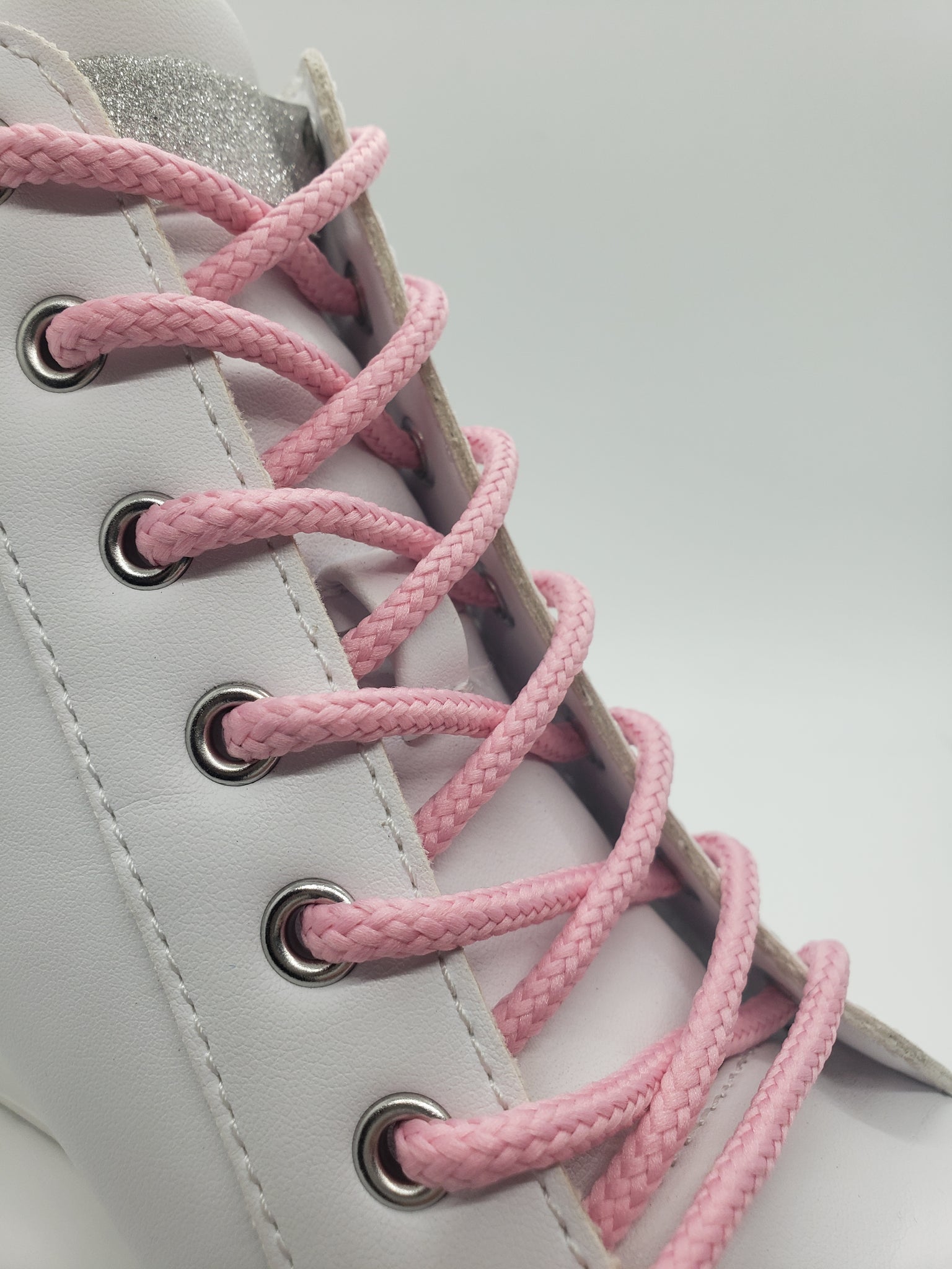 Solid Pink shoelaces – for the understated styles. Round laces work in pretty much all shoes. These laces are made with a filler to provide durability and strength for any application. Approximately 3/16” diameter.