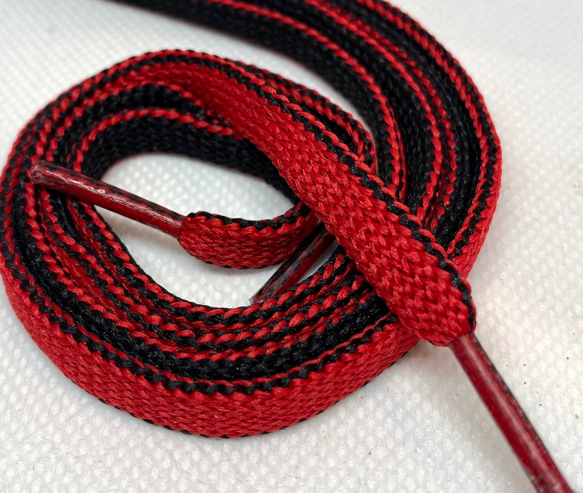 Unique two sided shoelaces. Red on one side and Black on the other.